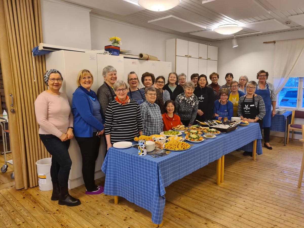 Nuormartat kokoontuivat marttailtaan Mäntymäellä valmistamaan herkkuja notkuneen pääsiäisen noutopöydän.